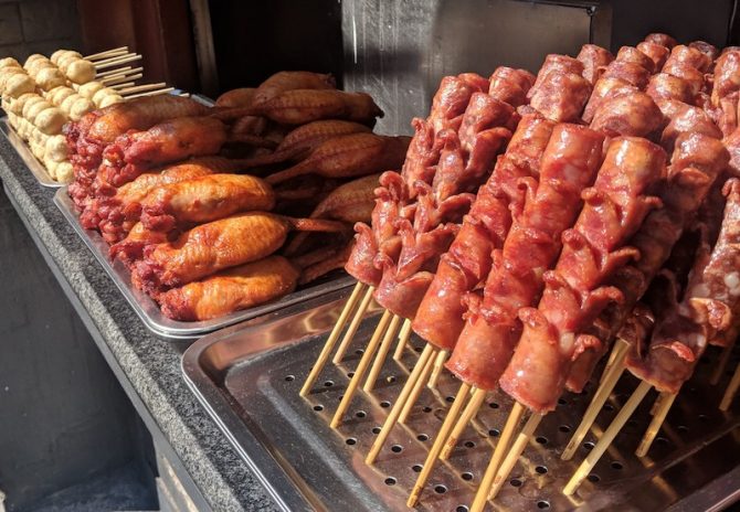 If you opted for a 15-minute sit down for noodles, you won’t want to waste any more time keeping stationary when you can’t get enough of the eye candy that a repeated stroll up and down the alley affords. (Fear not: skewered insects are one thing, but I never saw any candy made from actual eyes.) Fortunately, you can get just about anything on a stick for maximum snack portability. Corn, sausage, squid, and delightfully slinky-like stacks of hasselback potato chips are tasty but for the faint of heart. For “when in China” bravado mixed with “weirder than I expected” flavor, go for a skewered, deep-fried starfish.