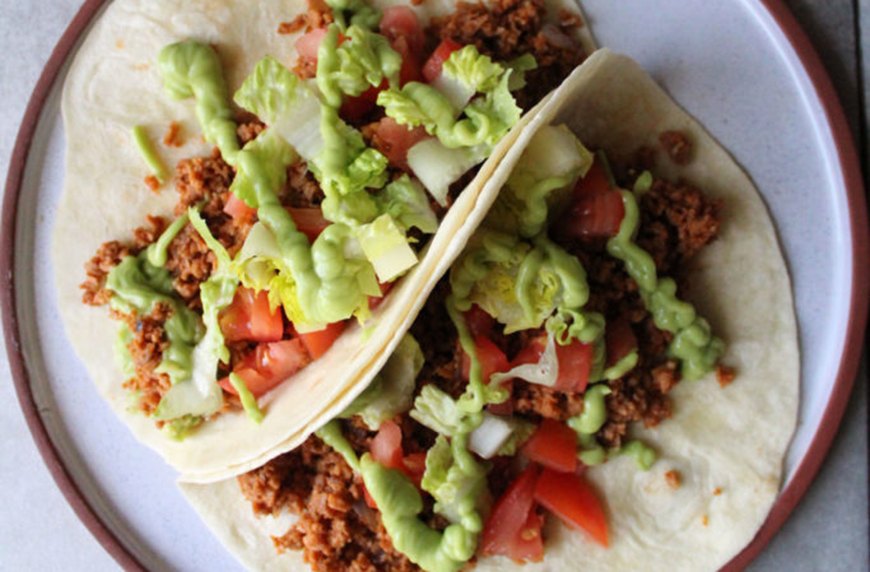 If you haven’t tried TVP—textured vegetable protein—yet, it makes for the perfect crumbly beef substitute in tacos. Stir in some taco seasoning, then pile on the veggies, lettuce, and salsa.