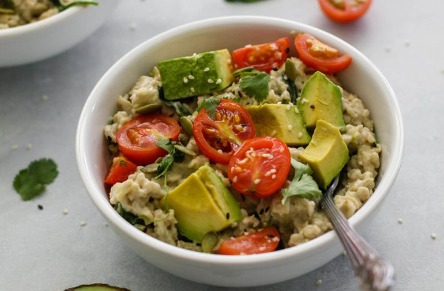 Why just eat oatmeal for breakfast? It’s a great savory option when you add in some herbs, veggies, and nutritional yeast for a cheesy flavor.