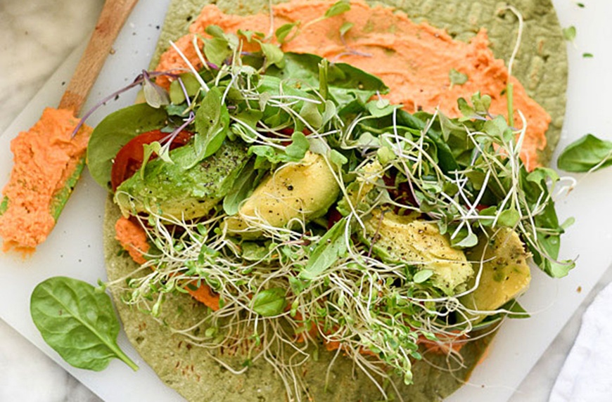 There’s no easier meal than slathering a tortilla with hummus, piling on fresh veggies, then rolling it up into a wrap.