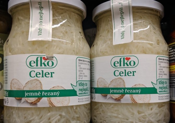 Probably the best way to extend the shelf life of your vacation to Prague is from the shelves of the condiment aisle. Even as I write this I am sensing that in Prague I have found my epicurean spiritual home for the following reasons: the horseradish is spicier (and native), the mustard is creamier and mellower, and anything that can be pickled is pickled. (No comment on the citizenry.) My genetic code might be mostly French and English, but I’m seriously starting to believe that my heart is Slavic.