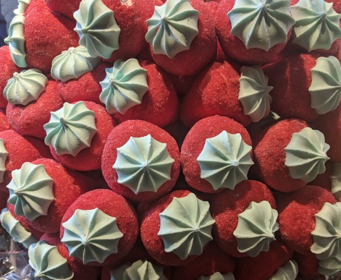 I resisted for as long as I could, but I passed one too many candy stores around the city that had these festive baubles in their front window to not need to go inside and investigate. Among more familiar selections such as sour gummies, marzipan, and licorice, these sweets turned out to be marshmallow confections decorated to look like their namesake flavors. In this case, strawberry, but bananas were also common. (You might even find a conventional candy bar in a market with the same idea.) It made me wonder: Is Prague the very birthplace of Peeps? A magic kingdom indeed.