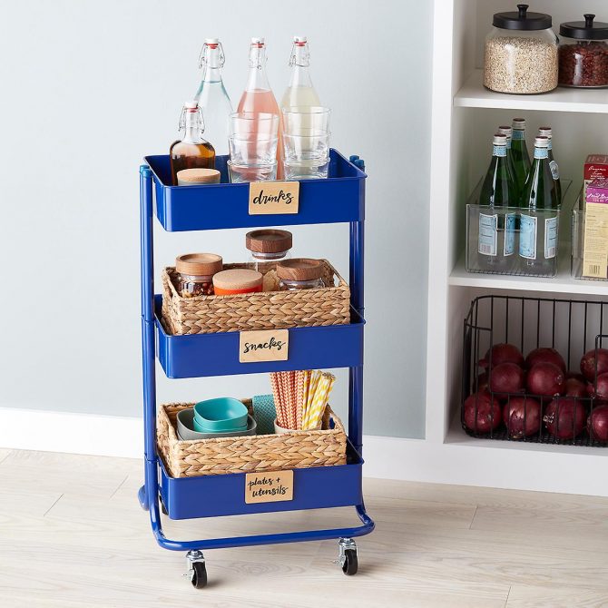 Make entertaining (and storage!) so much easier, thanks to this bar cart that comes with all of the supplies you’ll need to throw any party. Along with the 3-tier rolling cart, the set comes with two bins, three tall water bottles, three glass canisters, three bamboo bowls, two bamboo trays, three bamboo jars, and a set of three Birch Bin clip labels.Buy Now