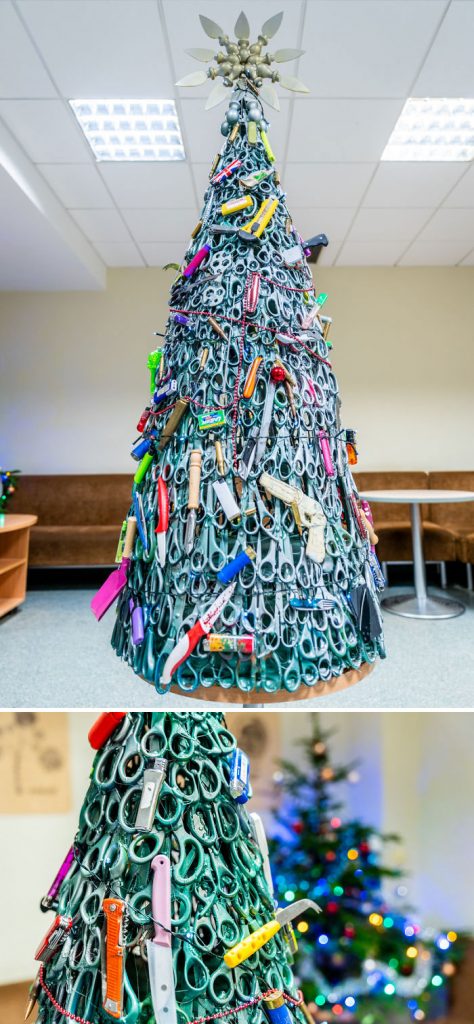 #25 Vilnius Airport Employees Create A Christmas Tree Made Of Confiscated Items