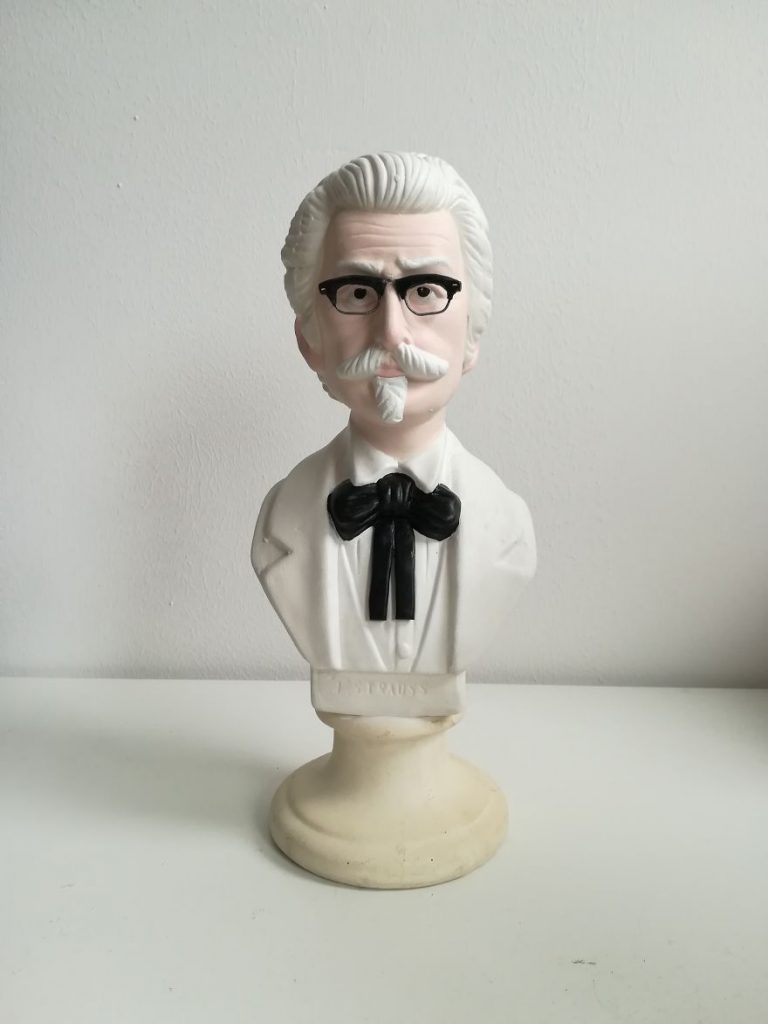 I do like some classical music once in a while, so my attention was drawn to these little guys. They would be an excellent addition to my workplace, which I was renovating. But they were a bit boring. “Would kids today even know these guys?” was going through my mind. Well, if they were Ronald McD or Colonel Sanders, they would… I didn’t hesitate and sprinted to the cash desk.