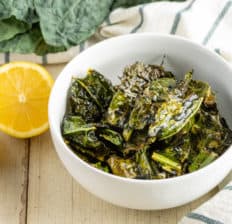 While this homemade kale chip recipe keeps things simple, you can always switch up the seasonings for something like paprika … or even parmesan (or nutritional yeast like in these spicy kale chips for those with dairy intolerances).